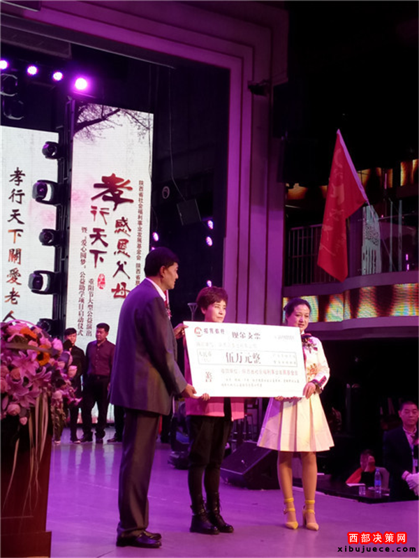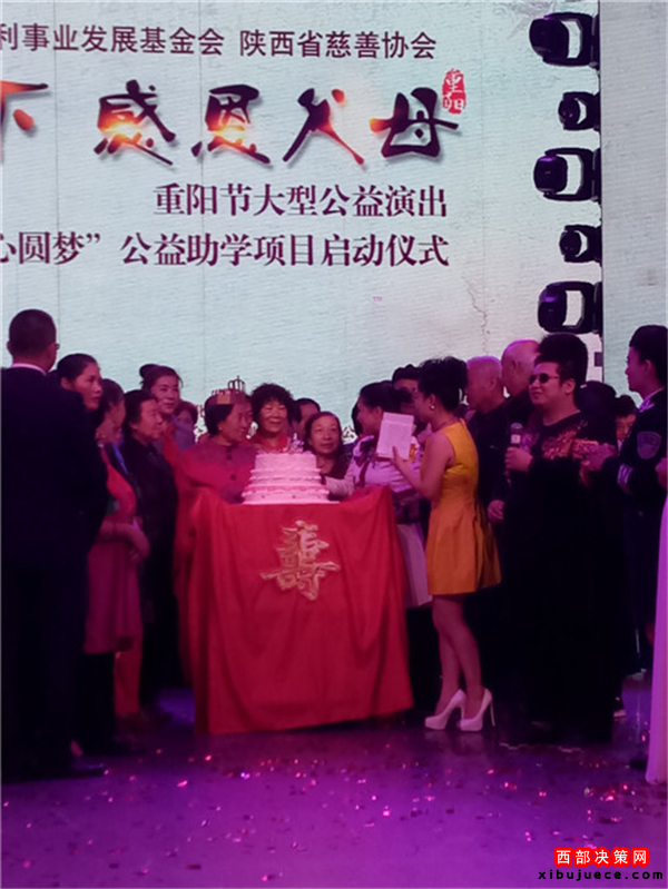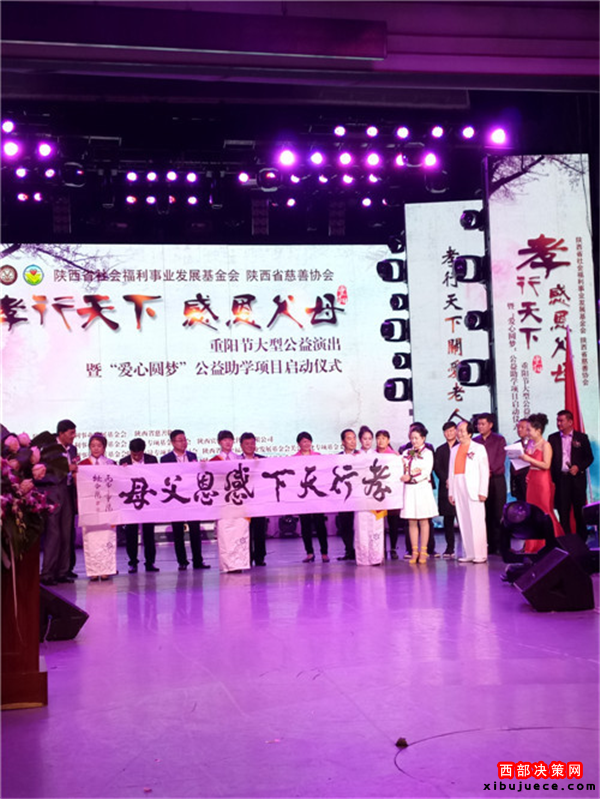 西部決策網(wǎng)訊 我國(guó)傳統(tǒng)的節(jié)日“九九重陽(yáng)”也是“老人節(jié)”。值此佳節(jié)良晨,在西安金翅鳥(niǎo)演藝隆重舉行了由陜西省民政廳指導(dǎo),陜西省社會(huì)福利事業(yè)發(fā)展基金會(huì)攜手陜西省慈善協(xié)會(huì)聯(lián)合主辦,陜西省社會(huì)福利發(fā)展基金會(huì)主持人專(zhuān)項(xiàng)基金委員會(huì)、陜西賓悅文化傳媒有限公司承辦,以及陜西省社會(huì)福利事業(yè)發(fā)展基金會(huì)陜北力量專(zhuān)項(xiàng)基金委員會(huì)、陜西省社會(huì)福利事業(yè)發(fā)展基金會(huì)關(guān)公文化專(zhuān)項(xiàng)基金委員會(huì)、陜西省社會(huì)福利事業(yè)發(fā)展基金會(huì)陜北民歌專(zhuān)項(xiàng)基金委員會(huì)、陜西省社會(huì)福利事業(yè)發(fā)展基金會(huì)影視文化專(zhuān)項(xiàng)基金委員會(huì)聯(lián)合協(xié)辦的“孝行天下感恩父母”大型公益演出暨“愛(ài)心圓夢(mèng)”公益助學(xué)項(xiàng)目隆重啟動(dòng)。