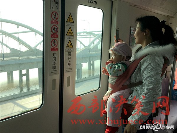 據(jù)了解,當(dāng)天試乘者中年齡最小的小妤僅8個(gè)月大,她坐在媽媽胸前的腰凳上不停的揮舞著小手,開(kāi)心不已。“我之前帶小妤坐過(guò)一號(hào)線和二號(hào)線,坐地鐵時(shí)她特別乖,喜歡東看看西看看。”小妤的媽媽沈女士告訴記者,由于擔(dān)心三號(hào)線開(kāi)通后人會(huì)很多,看見(jiàn)地鐵邀請(qǐng)市民試乘的消息后,她就想帶寶貝提前體驗(yàn)一下“小公舉”。