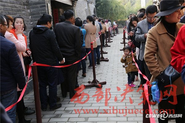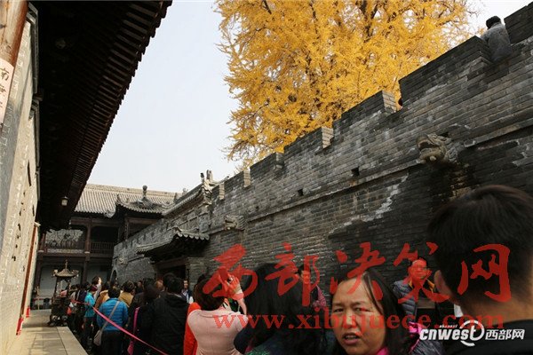 11月15日是周二,但去長安區(qū)古觀音禪寺看網(wǎng)紅銀杏樹的游客還是排起了長隊(duì),進(jìn)入寺廟大門跟著曲曲折折的隊(duì)伍緩緩移動到銀杏樹前得1個來小時(shí)。在銀杏樹的圍欄里,一名工作人員用喇叭不停地提醒游客加快腳步不要停留。