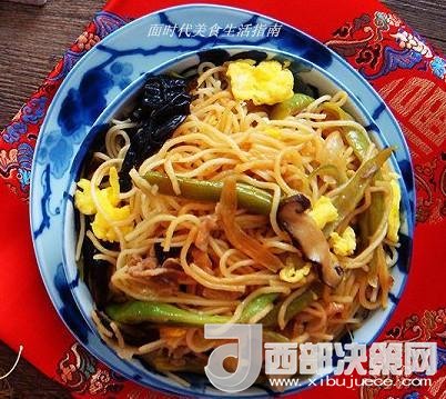 主料:細面條500克、輔料:豆角300克、木耳4朵、香菇4朵、大蔥1段、銀耳半朵、雞蛋2個、五花肉150克、醬油5勺、老抽1小勺、甜面醬3勺、鹽7克。