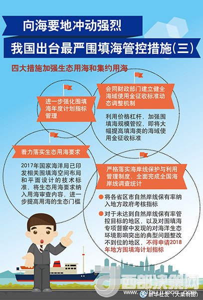 ——著力落實生態(tài)用海要求,2017年國家海洋局已印發(fā)相關圍填海空間布局和平面設計的技術標準,將生態(tài)用海要求納入用海審查內(nèi)容,進一步提高用海的生態(tài)門檻。