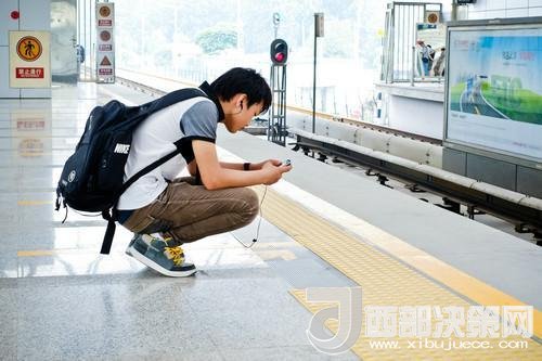 資料圖片:2012年7月18日,在北京地鐵立水橋站,一名年輕人在候車(chē)期間查看手機(jī)。新華社發(fā)