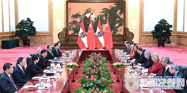 范德貝倫表示,很高興來華訪問。中國自改革開放以來,取得了前所未有的經(jīng)濟成就,也為奧中合作提供了重要機遇。奧中關(guān)系持續(xù)深入發(fā)展令人高興。奧方致力于深化同中方經(jīng)貿(mào)、投資、科研、環(huán)保、清潔能源、文化、體育等領(lǐng)域交流合作。奧地利高度贊賞中國在應(yīng)對氣候變化等全球事務(wù)中發(fā)揮的積極作用,愿密切兩國溝通協(xié)調(diào)。奧地利將于今年7月輪任歐盟主席國,愿為深化歐中合作發(fā)揮積極作用。庫爾茨表示,祝賀中國發(fā)展驕人的成績。奧地利非常高興成為中國的伙伴。奧地利總統(tǒng)率領(lǐng)如此龐大代表團出訪史無前例,充分表明奧各界發(fā)展對華關(guān)系的熱情。奧方對推進富有成果的兩國合作充滿期待,愿推進更加緊密的奧中關(guān)系。
