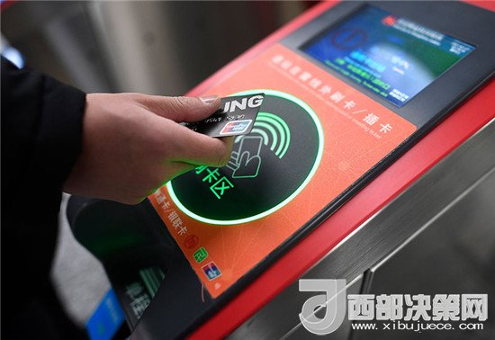 乘客在杭州地鐵豐潭路站體驗使用帶有閃付功能的銀聯(lián)IC卡過閘乘車(2017年12月27日攝)。新華社記者 黃宗治 攝