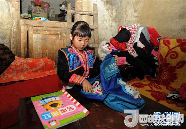 在今年的易地扶貧搬遷中,家住貴州省安順市西秀區(qū)巖臘鄉(xiāng)龍?zhí)洞甯裆趁缯?歲女孩吉雪,與家人一起從缺水、耕地少、海拔高的格沙苗寨搬遷至50公里外的西秀區(qū)工業(yè)園區(qū)易地扶貧搬遷安置點(diǎn)——彩虹社區(qū)。從4月21日夜開(kāi)始,吉雪便開(kāi)始忙著收拾自己的書(shū)包,準(zhǔn)備隨同爺爺、奶奶、妹妹一起離開(kāi)深山苗寨。