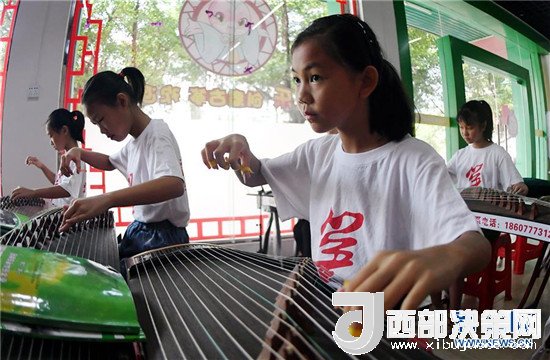 7月12日,孩子們?cè)趶V西欽州市一家古箏培訓(xùn)中心練習(xí)。