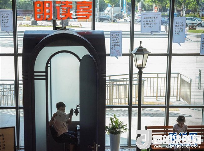 7月17日,在安徽合肥市瑤海圖書城內(nèi),孩子們?cè)诶首x亭內(nèi)讀書。該圖書城專門設(shè)立了朗讀亭,讓讀者閱讀的同時(shí)可以朗讀自己喜愛(ài)的書籍段落,并留下錄音上傳網(wǎng)絡(luò),分享給自己的好友。 新華社記者郭晨攝