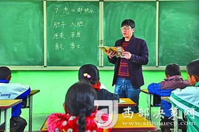 在甘肅省永靖縣小嶺鄉(xiāng)土門(mén)村土門(mén)小學(xué),校長(zhǎng)鮮虎給一年級(jí)學(xué)生上語(yǔ)文課。新華社記者 范培珅攝