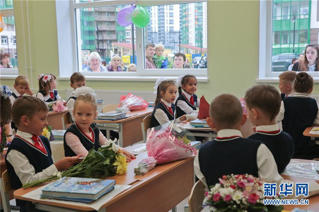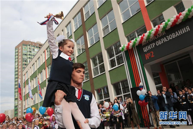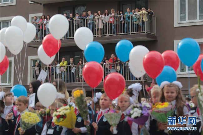 當(dāng)天是俄羅斯開學(xué)日,也是俄羅斯的“知識日”,眾多學(xué)校舉行開學(xué)典禮,迎接新學(xué)期的開始。 新華社發(fā)(莫京娜 攝)