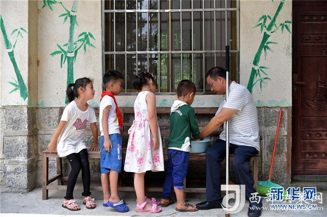 午飯開飯前,高自仁幫助孩子們洗手(9月3日攝)。新華社記者 彭昭之?dāng)z