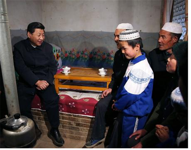 2012年12月30日,習(xí)近平一大早就踏著皚皚殘雪,來(lái)到大山深處的駱駝灣村。一戶村民家里,一張土炕占去半間屋子,炕上擺著一個(gè)取暖的火盆。習(xí)近平上炕盤(pán)腿而坐,和一家人圍著炭火拉起家常。他叮囑要把小孫子的教育搞好,說(shuō)希望在下一代,下一代要過(guò)好生活,首先得有文化。
