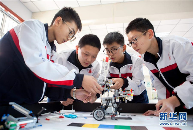 近年來,河北武邑中學(xué)開設(shè)機器人、航模、科技實驗等趣味科普課程,激發(fā)學(xué)生的創(chuàng)新創(chuàng)造意識和科學(xué)探索精神,讓學(xué)生近距離感受科技魅力。 新華社記者 朱旭東 攝
