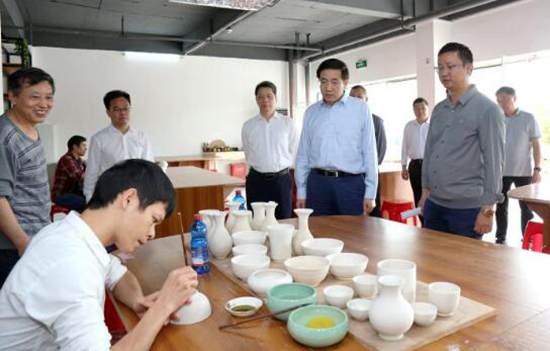 11月15日,市委書記、市人大常委會主任黃海昆深入北流市陶瓷小鎮(zhèn)調研。(記者 陳東 攝)