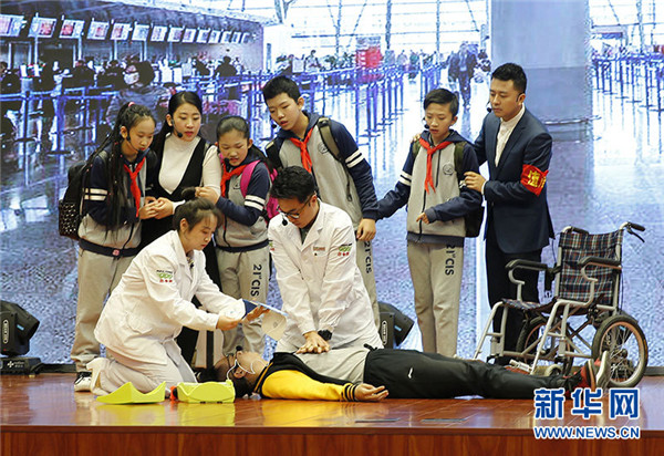 啟動儀式現(xiàn)場,北京市紅十字會999急救中心為師生們進行了生動有趣的回返式包扎應(yīng)用技術(shù)互動演示,北京二十一世紀國際學校的同學們表演了海淀區(qū)中小學生“百校百劇”安全教育情景劇大賽的獲獎節(jié)目《老師別怕,有我呢》。