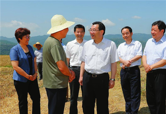 6月13日,省委書(shū)記胡和平在千陽(yáng)縣城關(guān)鎮(zhèn)新民村了解夏收和強(qiáng)農(nóng)惠農(nóng)政策落實(shí)情況。 記者 宋紅梅攝