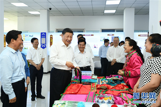 7月15日至16日,中共中央總書記、國(guó)家主席、中央軍委主席習(xí)近平在內(nèi)蒙古考察并指導(dǎo)開展“不忘初心、牢記使命”主題教育。這是15日上午,習(xí)近平在赤峰博物館同古典民族史詩(shī)《格薩(斯)爾》非物質(zhì)文化遺產(chǎn)傳承人親切交談。 新華社記者 謝環(huán)馳 攝