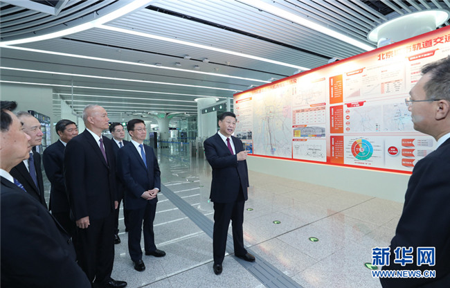 在草橋站進(jìn)站大廳,習(xí)近平結(jié)合展板聽(tīng)取情況介紹。習(xí)近平強(qiáng)調(diào),城市軌道交通是現(xiàn)代大城市交通的發(fā)展方向。發(fā)展軌道交通是解決大城市病的有效途徑,也是建設(shè)綠色城市、智能城市的有效途徑。北京要繼續(xù)大力發(fā)展軌道交通,構(gòu)建綜合、綠色、安全、智能的立體化現(xiàn)代化城市交通系統(tǒng),始終保持國(guó)際最先進(jìn)水平,打造現(xiàn)代化國(guó)際大都市。