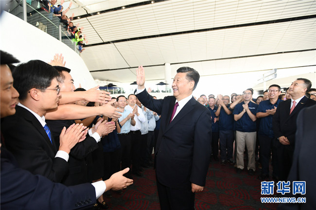 投運(yùn)儀式結(jié)束后,習(xí)近平來(lái)到機(jī)場(chǎng)國(guó)際出發(fā)大廳,看望參與機(jī)場(chǎng)建設(shè)和運(yùn)營(yíng)的工作人員代表。習(xí)近平同大家一一握手,代表黨中央向大家并向所有參與機(jī)場(chǎng)規(guī)劃、建設(shè)、運(yùn)營(yíng)的同志們表示熱烈的祝賀和節(jié)日的問(wèn)候。習(xí)近平指出,大興國(guó)際機(jī)場(chǎng)建設(shè)標(biāo)準(zhǔn)高、建設(shè)工期緊、施工難度大,全體建設(shè)者辛勤勞動(dòng)、共同努力,高質(zhì)量地完成了任務(wù),把大興國(guó)際機(jī)場(chǎng)打造成為精品工程、樣板工程、平安工程、廉潔工程,向黨和人民交上了一份令人滿意的答卷!