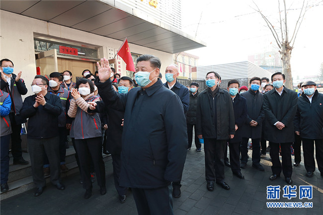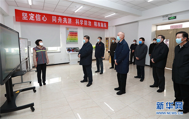 2月10日,中共中央總書記、國家主席、中央軍委主席習(xí)近平在北京調(diào)研指導(dǎo)新冠肺炎疫情防控工作。這是習(xí)近平在朝陽區(qū)安貞街道安華里社區(qū),了解基層一線疫情聯(lián)防聯(lián)控情況。 新華社記者 龐興雷 攝