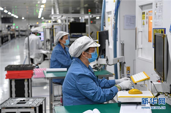 在位于深圳市龍崗區(qū)的海能達(dá)通信有限公司,工人們在生產(chǎn)車間工作(2月10日攝)。新華社記者 梁旭 攝