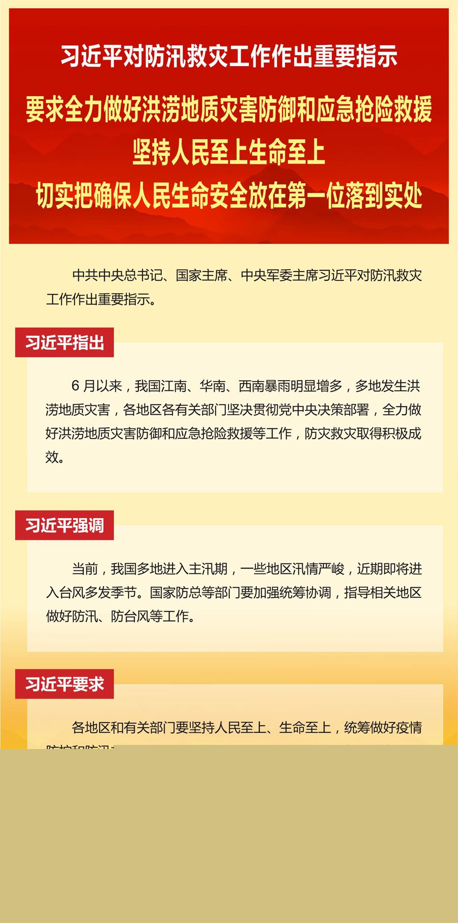 中共中央總書(shū)記、國(guó)家主席、中央軍委主席習(xí)近平對(duì)防汛救災(zāi)工作作出重要指示。