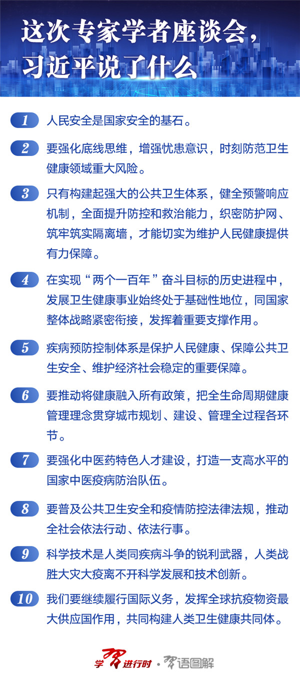 “要立足更精準(zhǔn)更有效地防”“要建立穩(wěn)定的公共衛(wèi)生事業(yè)投入機制”“要優(yōu)化完善疾病預(yù)防控制機構(gòu)職能設(shè)置”“要加大衛(wèi)生健康領(lǐng)域科技投入”……習(xí)近平對構(gòu)建起強大的公共衛(wèi)生體系提出一系列重要要求,涉及多個具體領(lǐng)域,細(xì)致入微。