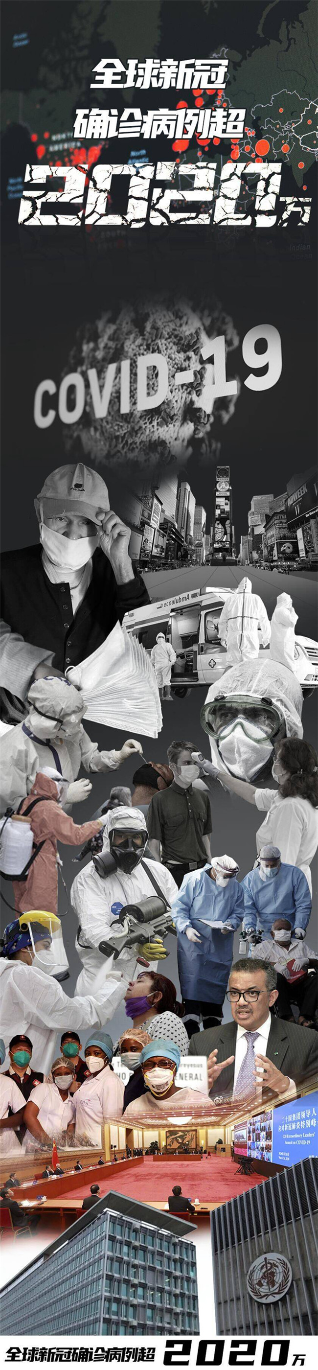 2020年8月13日,世界衛(wèi)生組織公布的最新統(tǒng)計(jì)顯示,全球新冠確診病例突破2020萬。這一巨大數(shù)字,折射出疫情之猛、抗疫之艱。