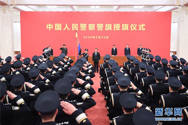 8月26日,中國人民警察警旗授旗儀式在人民大會(huì)堂舉行。中共中央總書記、國家主席、中央軍委主席習(xí)近平向中國人民警察隊(duì)伍授旗并致訓(xùn)詞。 新華社記者 張領(lǐng) 攝