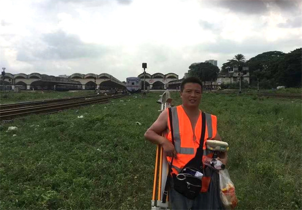 2008年上班以來,唐飛參與中鐵一局三公司所有鐵路、公路、水利、市政等項目的前期控制網(wǎng)復(fù)測工作,足跡遍布新疆的戈壁荒漠、廣西的大山、川藏的高山草甸、陜西的黃土高坡……甚至國外。