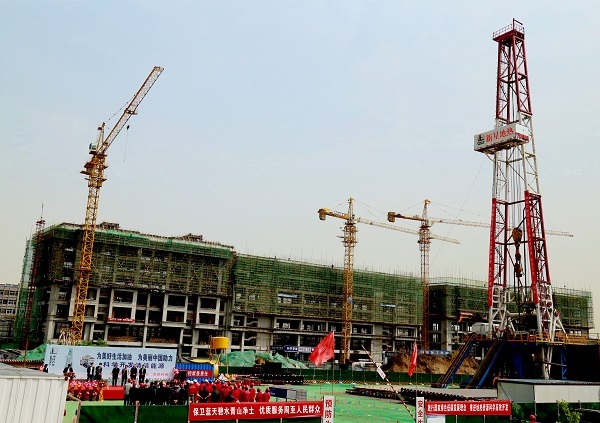 西安市周至縣錦華苑地?zé)峒泄犴?xiàng)目開鉆現(xiàn)場