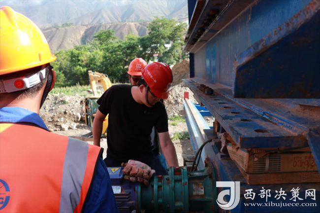 橫梁整體提升至75米和到位后的精準對位,這種形式在中鐵一局史上前所未有。提升采用4個千斤頂同步將橫梁提升上去,如果其中一個設備出現(xiàn)故障導致提升不同步,后果不堪設想。橫梁整體提升歷時12個小時,黨延升的心也忐忑了12個小時。過程中他死死的盯著監(jiān)測儀器,實時核對著提升數(shù)據(jù)。