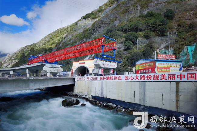 西部決策網(wǎng)訊11月29日,國道318線康定市過境段公路工程起點互通立交連接線最后一片T梁平緩地躺在康定河水面。至此,中鐵一局四公司國道318項目所有預(yù)制梁全部架設(shè)完畢。