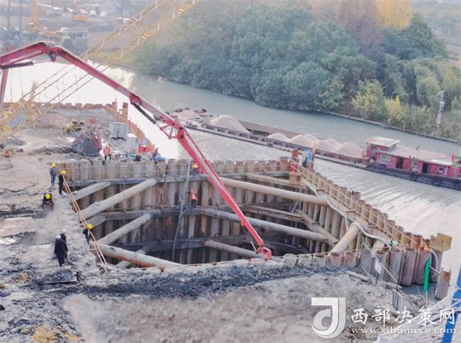 西部決策網(wǎng)訊12月7日,公司滬蘇湖鐵路項(xiàng)目全線最深的承臺(tái)基坑完成封底混凝土澆筑,標(biāo)志著項(xiàng)目洞涇特大橋跨洞涇港Ⅵ級(jí)航道(60+100+60)米連續(xù)梁的施工全面展開(kāi)。