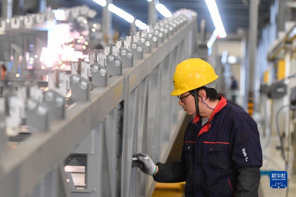 工人在位于杭州市臨平區(qū)的西奧電梯數(shù)字工廠生產(chǎn)車間內(nèi)作業(yè)(12月17日攝)。浙江省各地企業(yè)克服疫情影響,在做好疫情防控的前提下抓生產(chǎn)、保訂單,有序開展各項工作。新華社記者 黃宗治 攝