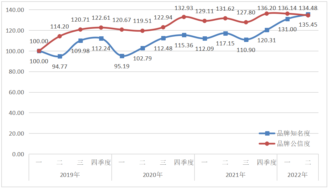 西鳳酒品牌傳播力指數(shù)2022年二季度運(yùn)行監(jiān)測(cè)顯示,西鳳酒品牌傳播力略有提升,達(dá)到134.96點(diǎn)。通過(guò)節(jié)日宣傳、交流拜訪、基酒項(xiàng)目建設(shè)等活動(dòng),西鳳酒品牌知名度和品牌公信度分別達(dá)到135.45點(diǎn)和134.48點(diǎn)。