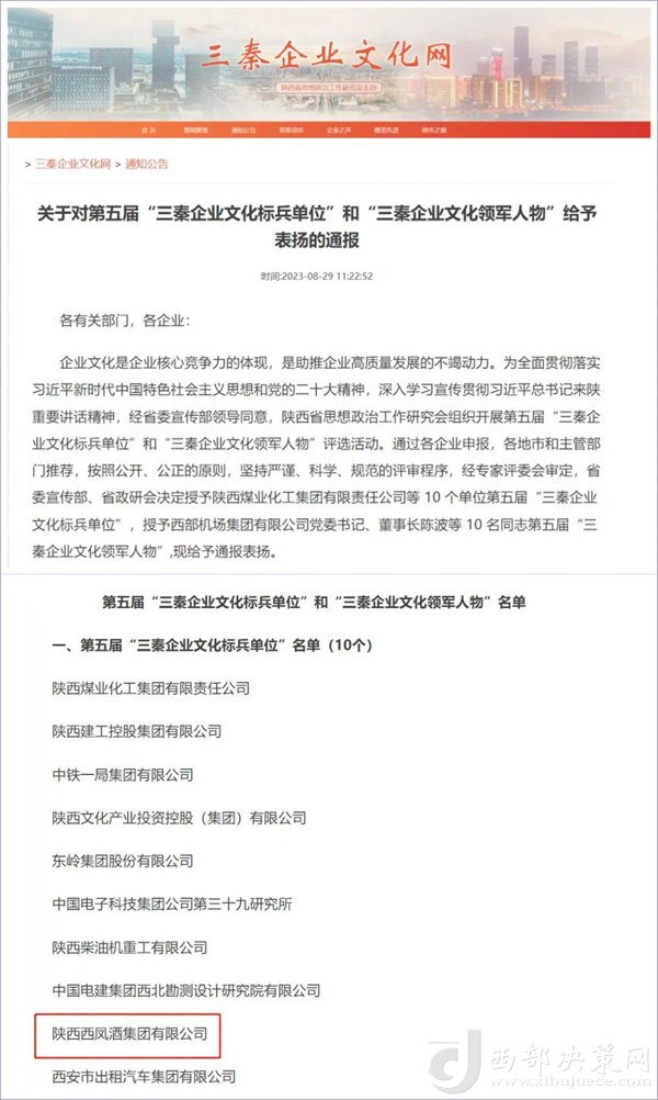 西鳳集團公司獲得“三秦企業(yè)文化標兵單位”殊榮