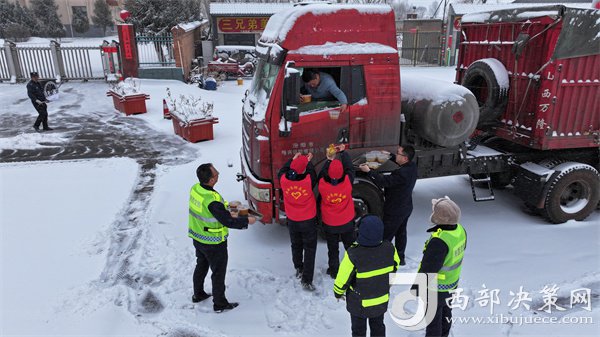 這有小米粥、炸油餅,雞蛋還熱乎著……”榆靖分公司志愿者暖心地喊著話。“行動是最好的破冰劑”,志愿者們?yōu)楦咚贉袈每退腿ナ澄?,頂風冒雪分發(fā)給滯留在收費站的司乘人員。一件件穿梭在寒風中的“紅馬甲”此刻成為了冬日里最美的“志愿紅”,讓群眾在寒意逼人的天氣里感受到了一份特別的溫暖。大家紛紛表示感謝,“熱粥、小菜、松軟的饅頭下肚,全身都熱乎了。”一名滯留司機真誠地感激道。