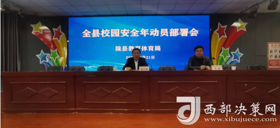 西部決策網訊 3月21日下午,寶雞市隴縣教育體育局召開全縣校園安全年動員部署會,深入學習領會習近平總書記關于安全生產的重要論述精神,認真落實中省市縣安全會議精神,總結工作,分析形勢,全面部署安排全縣教體系統(tǒng)2024年“校園安全年”活動。
